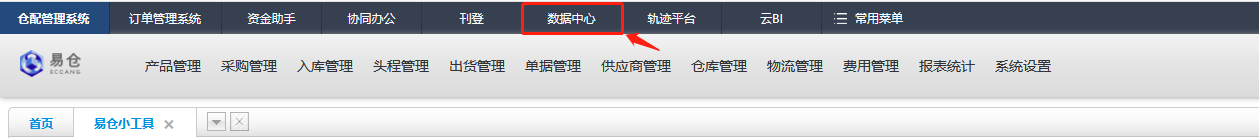 1)仓配管理系统-【系统设置】-【易仓小工具】-【添加授权】-【数据管理系统】如下图进行用户授权绑定;